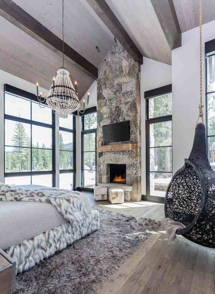 The Master suite would have unhindered views of the mountains outside through windows that frame the landscape like a painting. No bedroom of mine would exist without a natural stone wood fireplace.